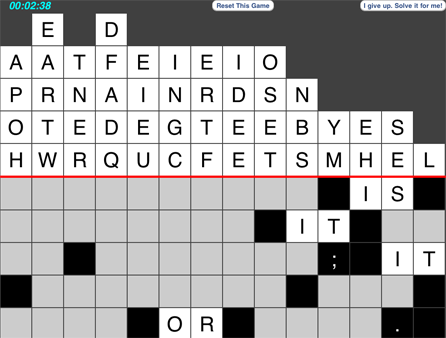 - Easy to use interface (drop letters on to empty spaces, move them back up to clear a space, or drop on a current letter to swap!