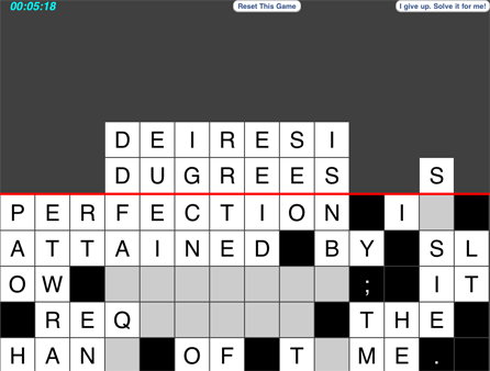 Unscramble the letters one column at a time, dropping them down into place to form one of hundred of famous quotes by wise minds such as Mark Twain, Aesop, Benjamin Franklin, Voltaire & more. Score is based on time elapsed, qoute length and average word length. Play your favorite word puzzle game is now ready to play ANYTIME, ANYWHERE!